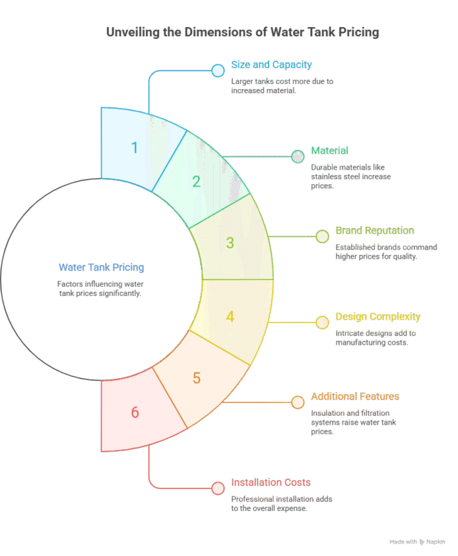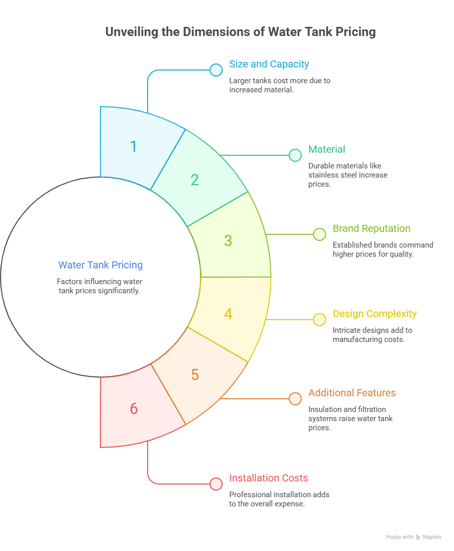 Logistics and installation costs impact the price of water tanks.